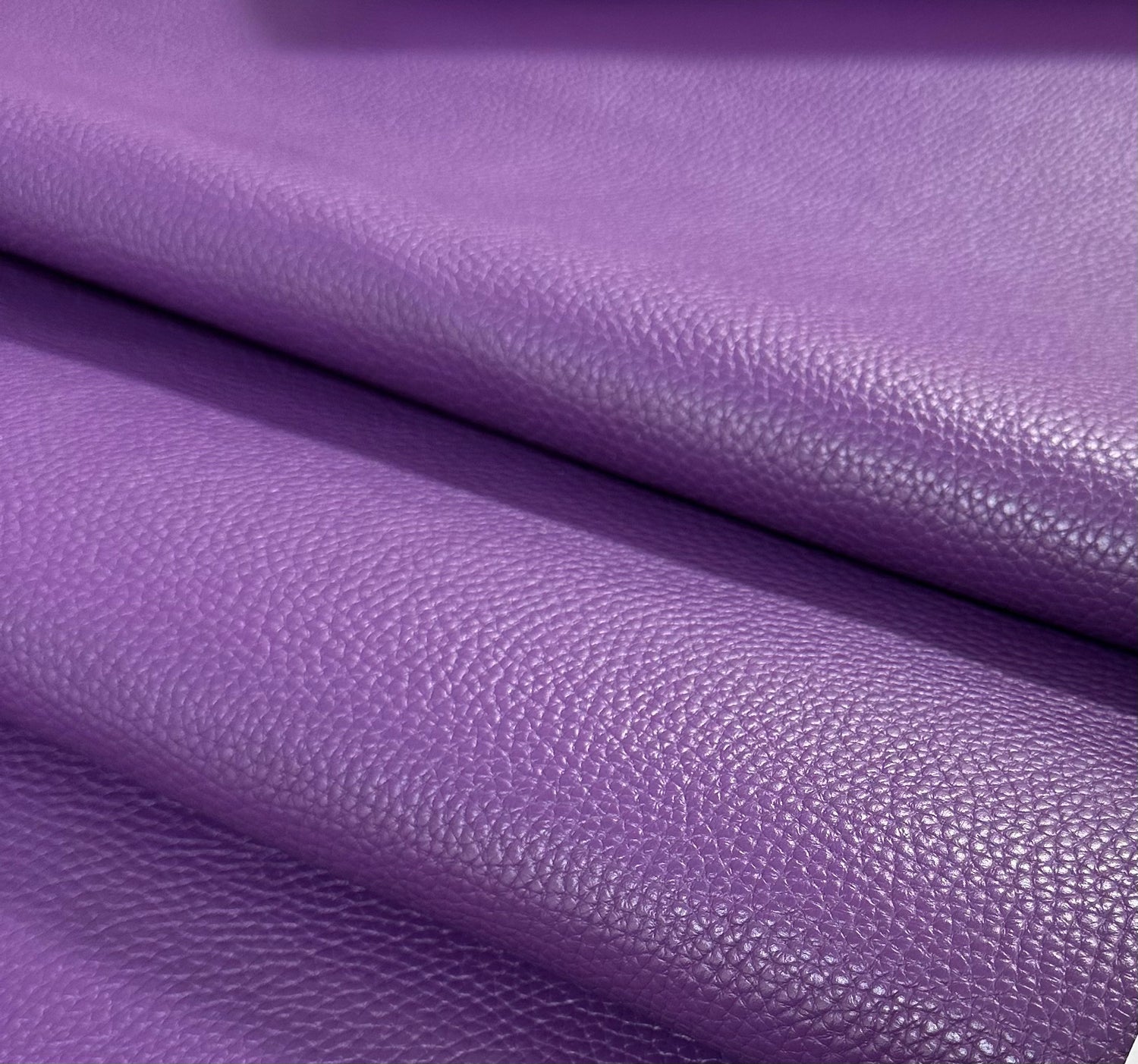 Full-grain, top grade Italian leather with a delicate pebbled printed grain in a gorgeous purple color. It has a soft to medium, yet supple temper, providing the perfect combination of structure and softness. It has been split to 1 mm (2.5 oz) and doesn't need to be skived.